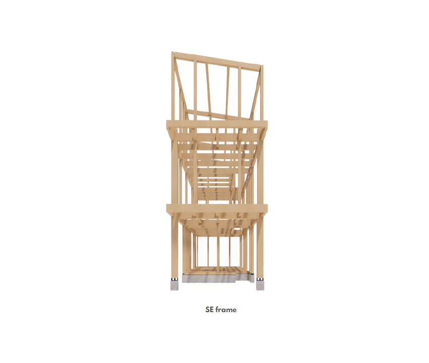 通常の木造では壁量の制約が大きくなりがちな狭小住宅ですが、SE構法なら耐震性を保ちながら開口部を確保しやすく、明るく開放感のある空間づくりが可能です。ビルトインガレージやスキップフロアなどのご要望にも柔軟に対応できます。また、3階建ては構造バランスが特に重要です。SE構法では全棟構造計算を行うため、数値に基づいた安心設計が実現します。